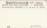 B. P. [PIĄTKIEWICZ Bronisław] 1929 a Sprawa mapy Tatr (1:10 000).