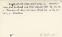 PIĄTKIEWICZ Bronisław 1930 a Entwicklung und Zustand der Photogrammetrie in Polen.