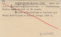 PIĄTKIEWICZ Marian 1953 Dwie miłości M[ieczysława] Karłowicza.