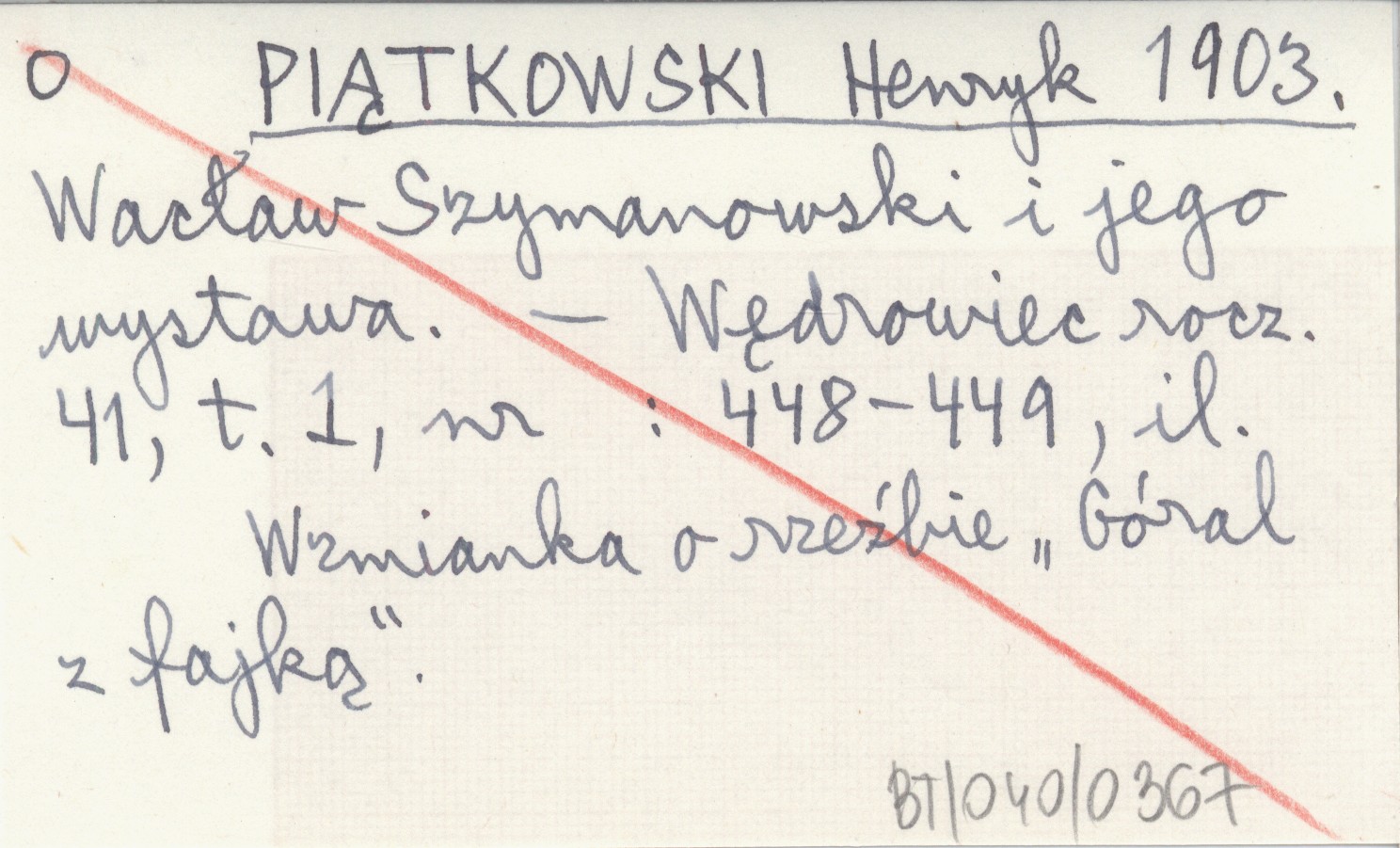 PIĄTKOWSKI Henryk 1903 Wacław Szymanowski i jego wystawa.