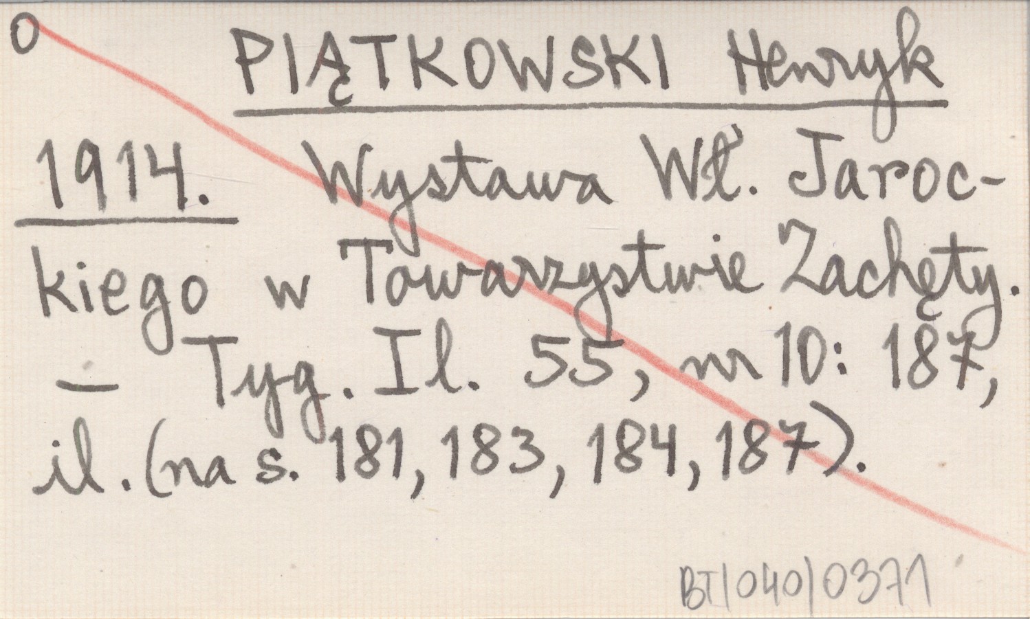 PIĄTKOWSKI Henryk 1914 Wystawa Wł. Jarockiego w Towarzystwie Zachęty.