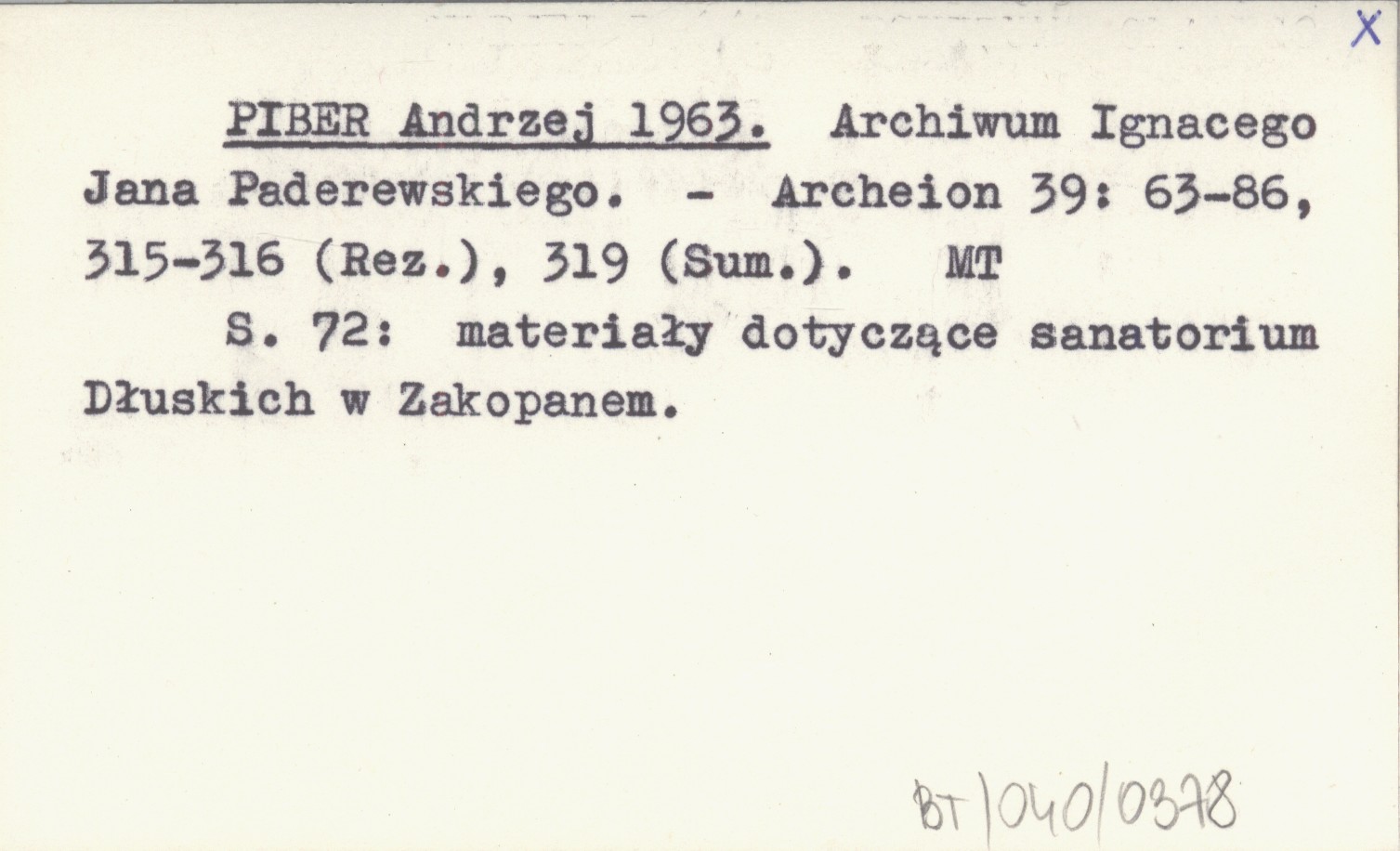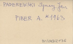 PIBER Andrzej 1963 Archiwum Ignacego Jana Paderewskiego.