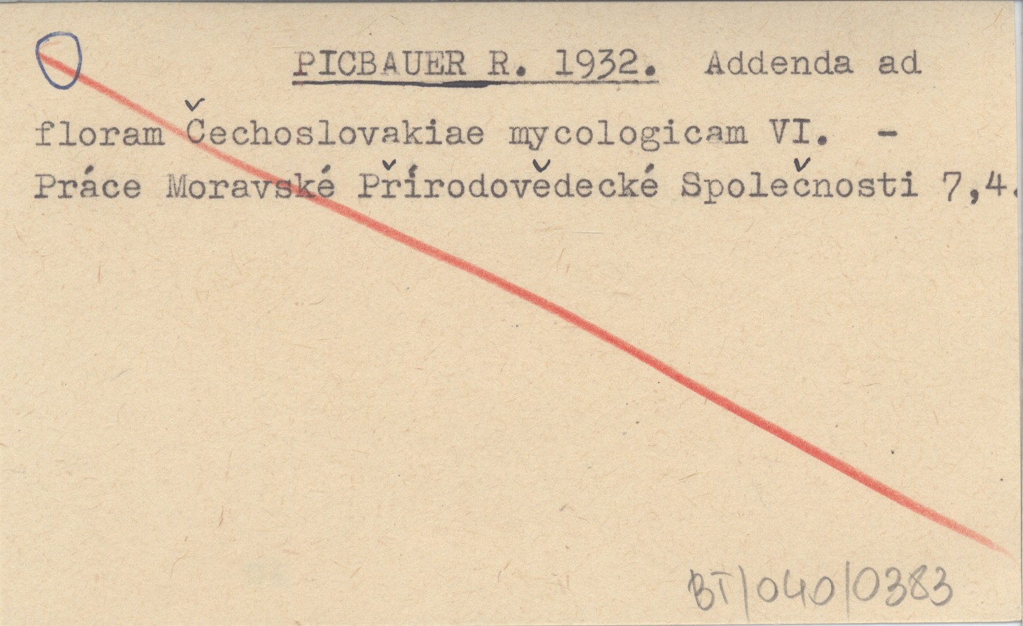 PICBAUER R. 1932 Addenda ad floram Čechoslovakiae mycologicam VI.