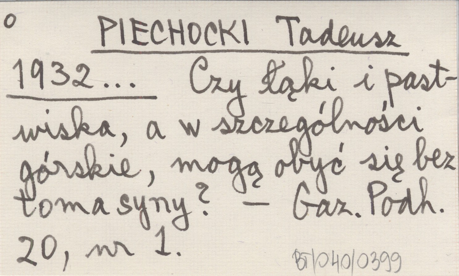 PIECHOCKI Tadeusz 1932... Czy łąki i pastwiska, a w szczególności górskie, mogą obyć się bez tomasyny?
