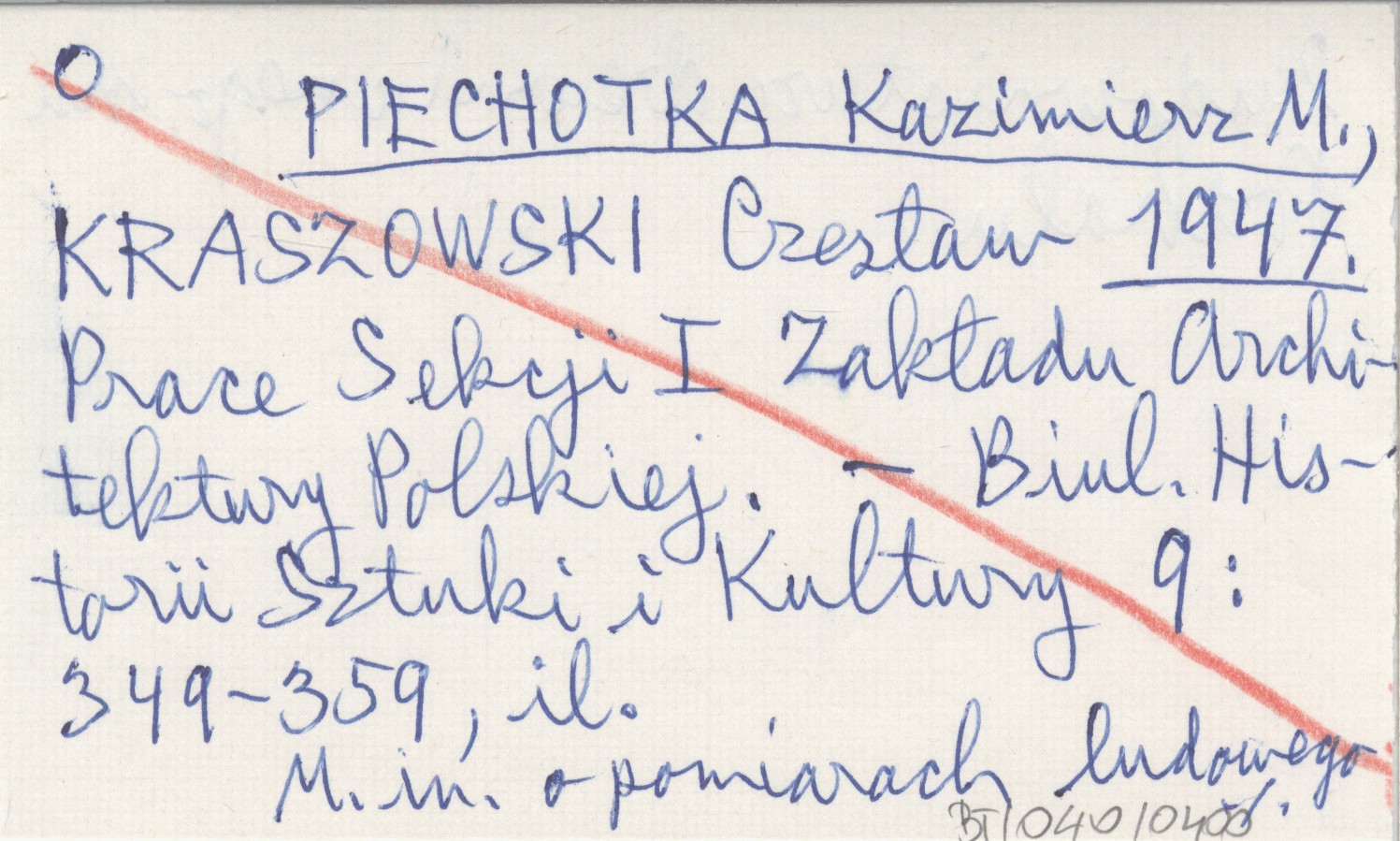 PIECHOTKA Kazimierz M. KRASZOWSKI, Czesław. ; 1947 Prace Sekcji I Zakładu Architektury Polskiej.