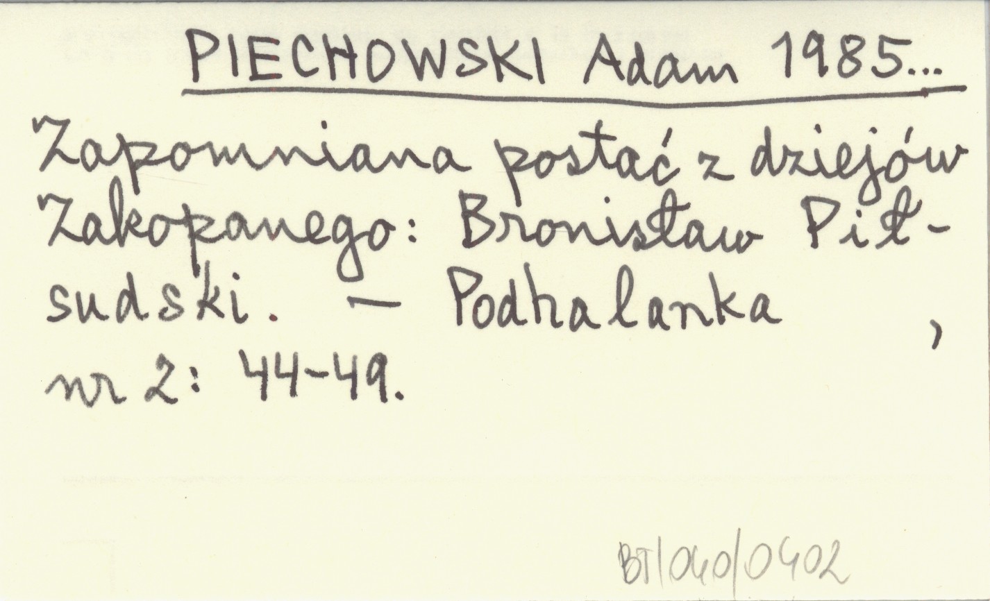 PIECHOWSKI Adam 1985... Zapomniana postać z dziejów Zakopanego. Bronisław Piłsudski.