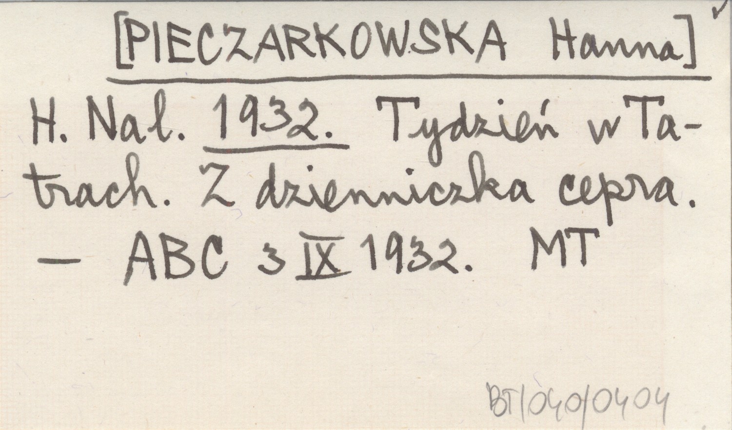 H. Nal. [PIECZARKOWSKA Hanna] 1932 Tydzień w Tatrach. Z dzienniczka cepra.