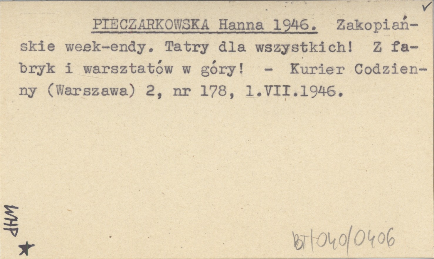 PIECZARKOWSKA Hanna 1946 Zakopiańskie week-endy. Tatry dla wszystkich! Z fabryk i warsztatów w góry!