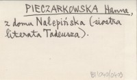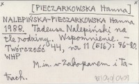 NALEPIŃSKA-PIECZARKOWSKA Hanna [PIECZARKOWSKA Hanna] 1988 Tadeusz Nalepiński na tle rodziny. Wspomnienie.