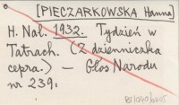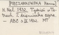 H. Nal. [PIECZARKOWSKA Hanna] 1932 Tydzień w Tatrach. (Z dzienniczka cepra).