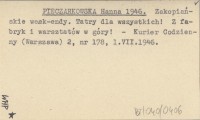 PIECZARKOWSKA Hanna 1946 Zakopiańskie week-endy. Tatry dla wszystkich! Z fabryk i warsztatów w góry!