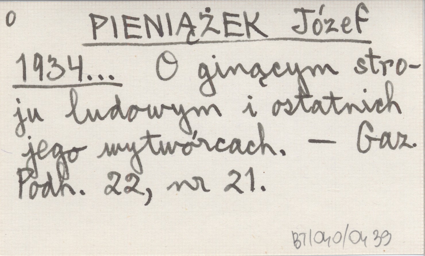 PIENIĄŻEK Józef 1934... O ginącym stroju ludowym i ostatnich jego wytwórcach.
