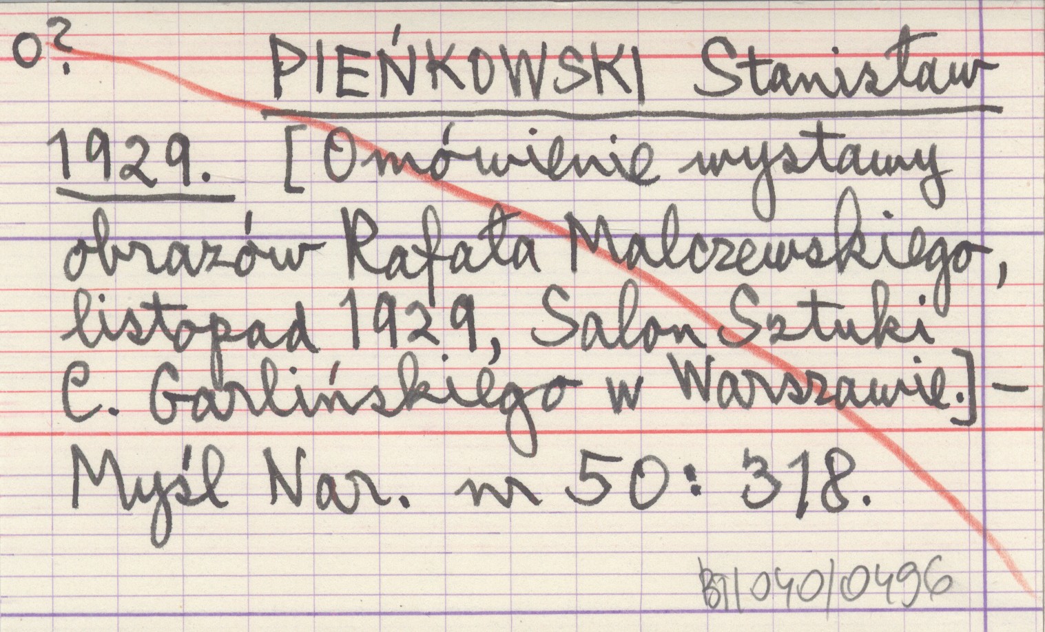 PIEŃKOWSKI Stanisław 1929 [Omówienie wystawy obrazów Rafała Malczewskiego, listopad 1929, Salon Sztuki C. Garlińskiego w Warszawie.]