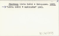 Pierwsza lista Gości w Zakopanem. 1889