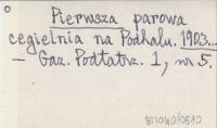 Pierwsza parowa cegielnia na Podhalu. 1903...