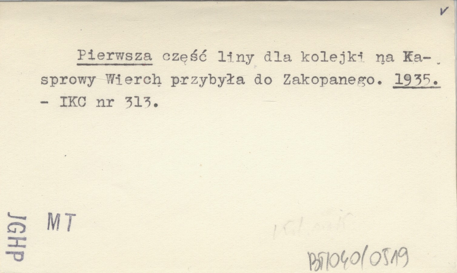 Pierwsza część liny dla kolejki na Kasprowy Wierch przybyła do Zakopanego. 1935