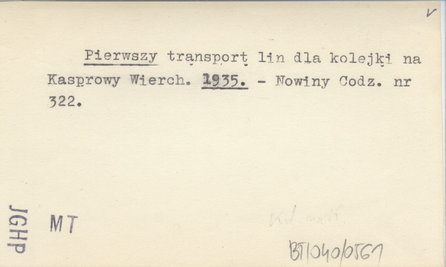 Pierwszy transport lin dla kolejki na Kasprowy Wierch. 1935
