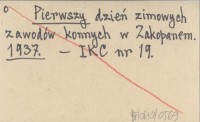 Pierwszy dzień zimowych zawodów konnych w Zakopanem. 1937