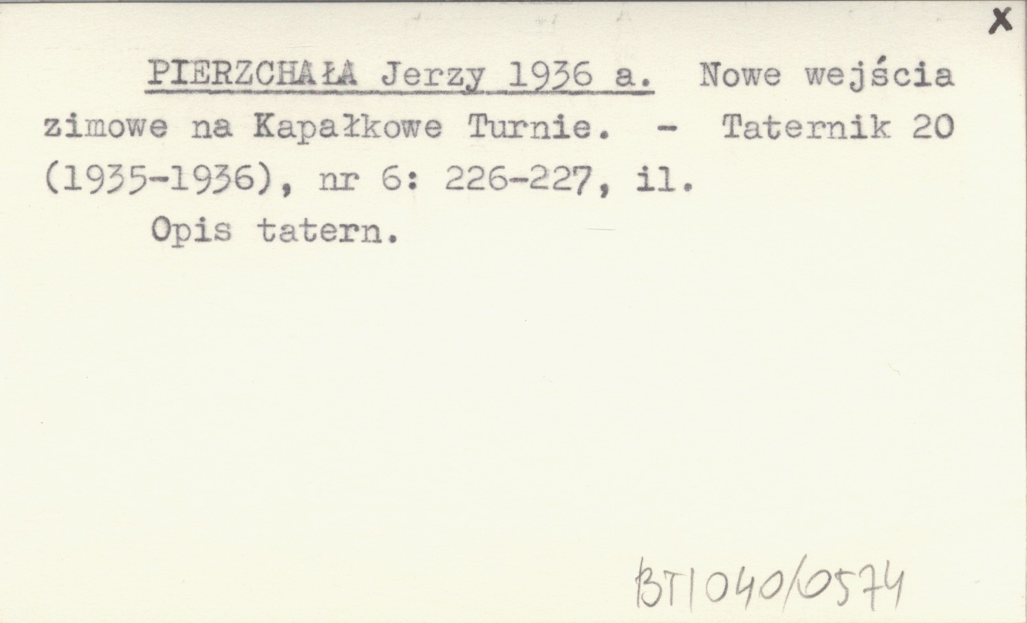Taternik, 20 (1935-1936), nr 6: 226-227, il. Opis taternicki.