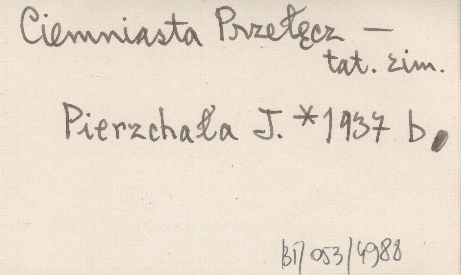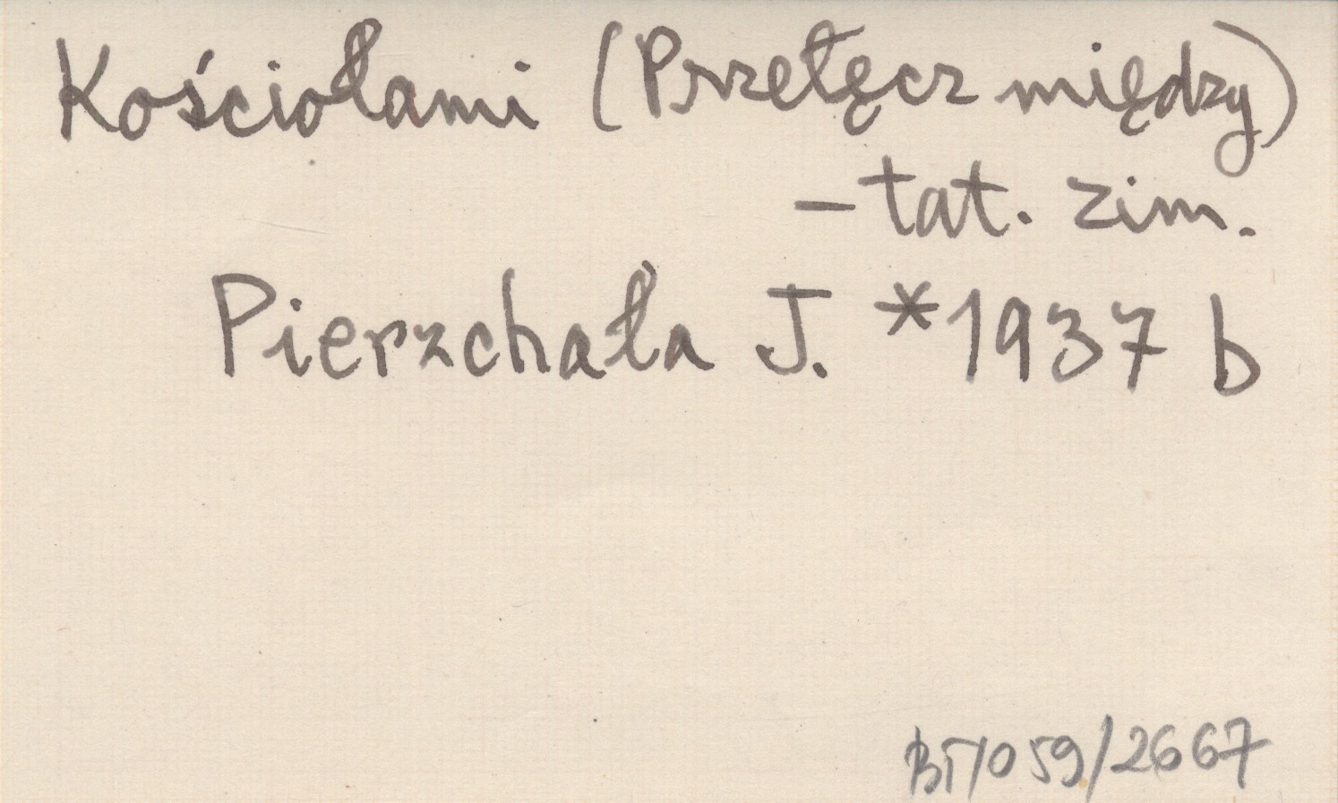 PIERZCHAŁA Jerzy 1937 b Przełęcz między Kościółkami. I wejście zimowe z Dol. Staroleśnej. Wielki Kościół. I wejście zimowe i I przejście zimowe graniami od Przełęczy między Kościołami do Ciemniastej Przełęczy. Ciemniasta Przełęcz. Przejście [zejście!] zimowe do Dol. Staroleśnej.