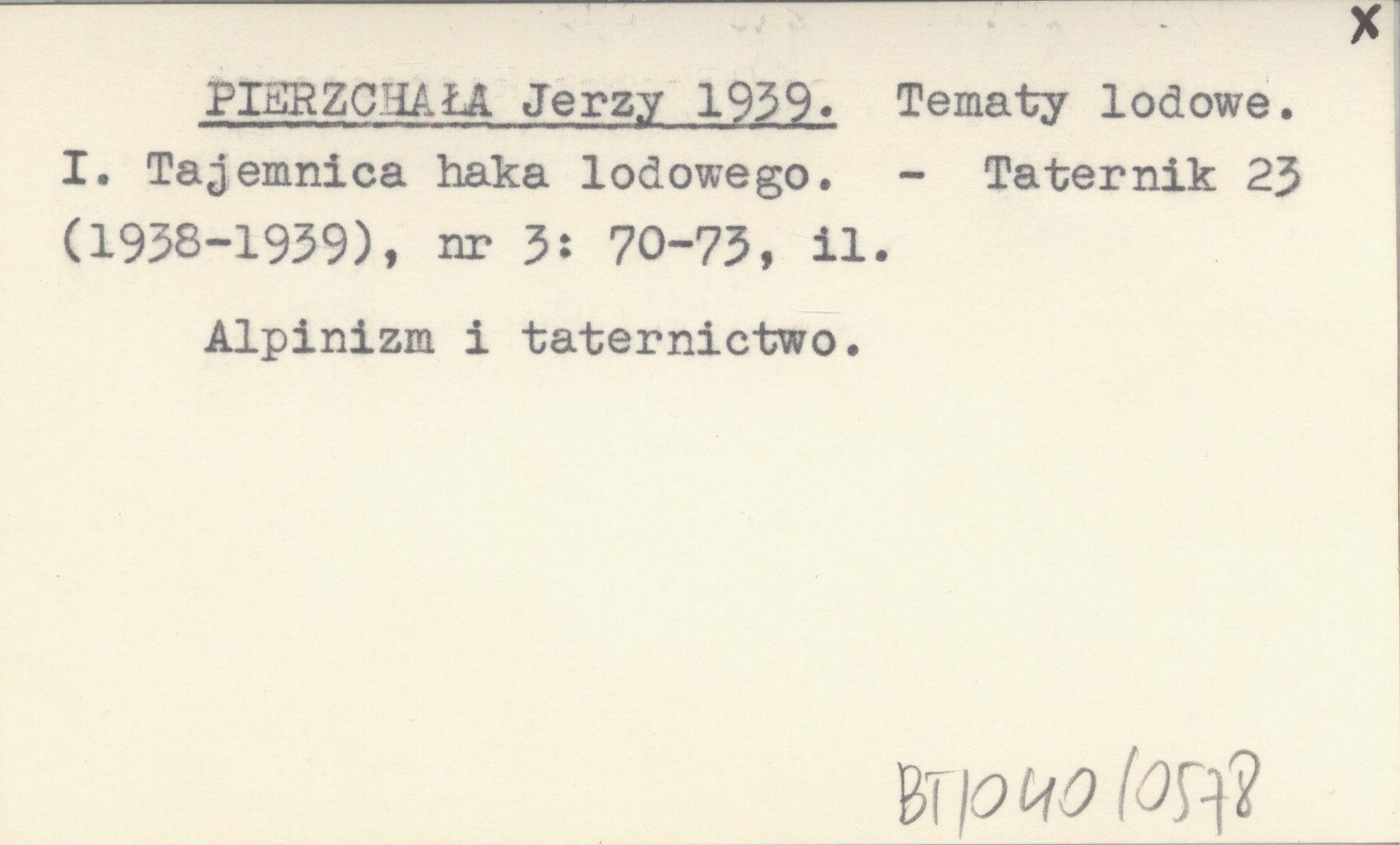 PIERZCHAŁA Jerzy 1939 Tematy lodowe. I. Tajemnica haka lodowego.