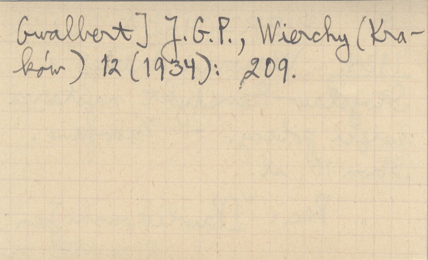 Zakopane , 15 s., il. REC: [PAWLIKOWSKI Jan Gwalbert] J. G. P., Wierchy (Kraków) 12 (1934): 209.