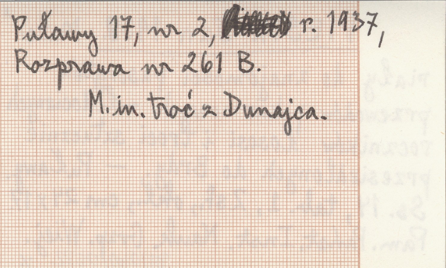 Puławy , 14 s., 1 k., Zsf., okł., 24x17 cm. M. in. troć z Dunajca. Pamiętnik Państwowego Instytutu Naukowego Gospodarki Wiejskiej Puławy 17, nr 2, r. 1937, Rozprawa nr 261 B.