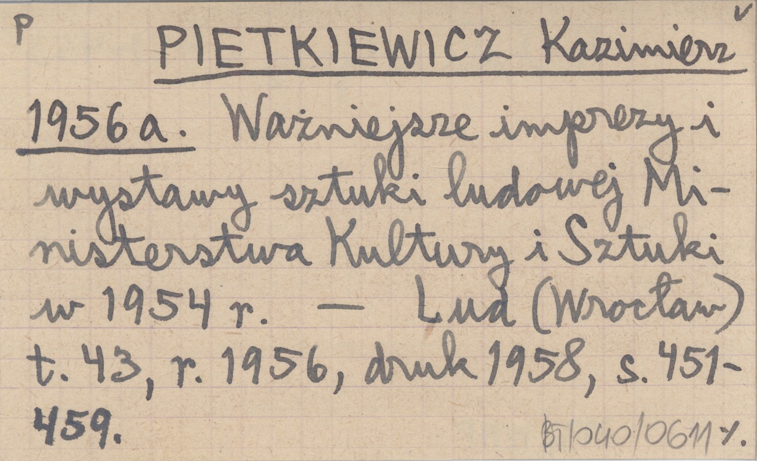 PIETKIEWICZ Kazimierz 1956 a Ważniejsze imprezy i wystawy sztuki ludowej Ministerstwa Kultury i Sztuki w 1954 r.