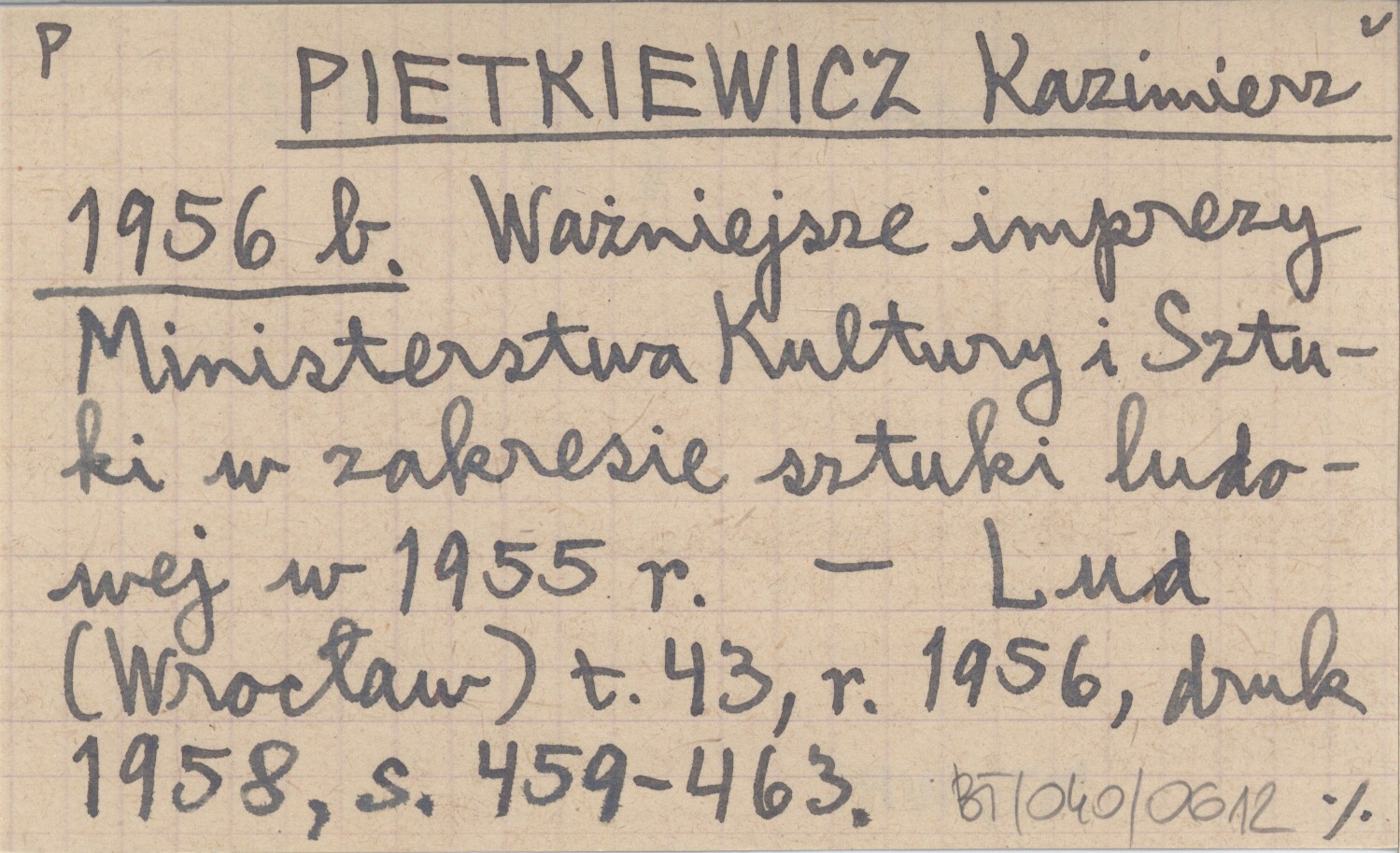 PIETKIEWICZ Kazimierz 1956 b Ważniejsze imprezy Ministerstwa Kultury i Sztuki w zakresie sztuki ludowej w 1955 r.