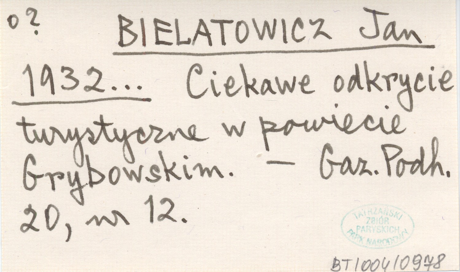 BIELATOWICZ Jan 1932... Ciekawe odkrycie turystyczne w powiecie Grybowskim.