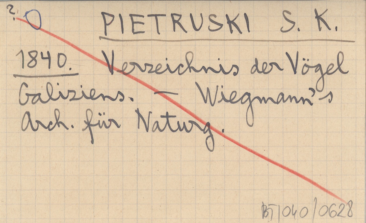 PIETRUSKI S. K. 1840 Verzeichnis der Vögel Galiziens.
