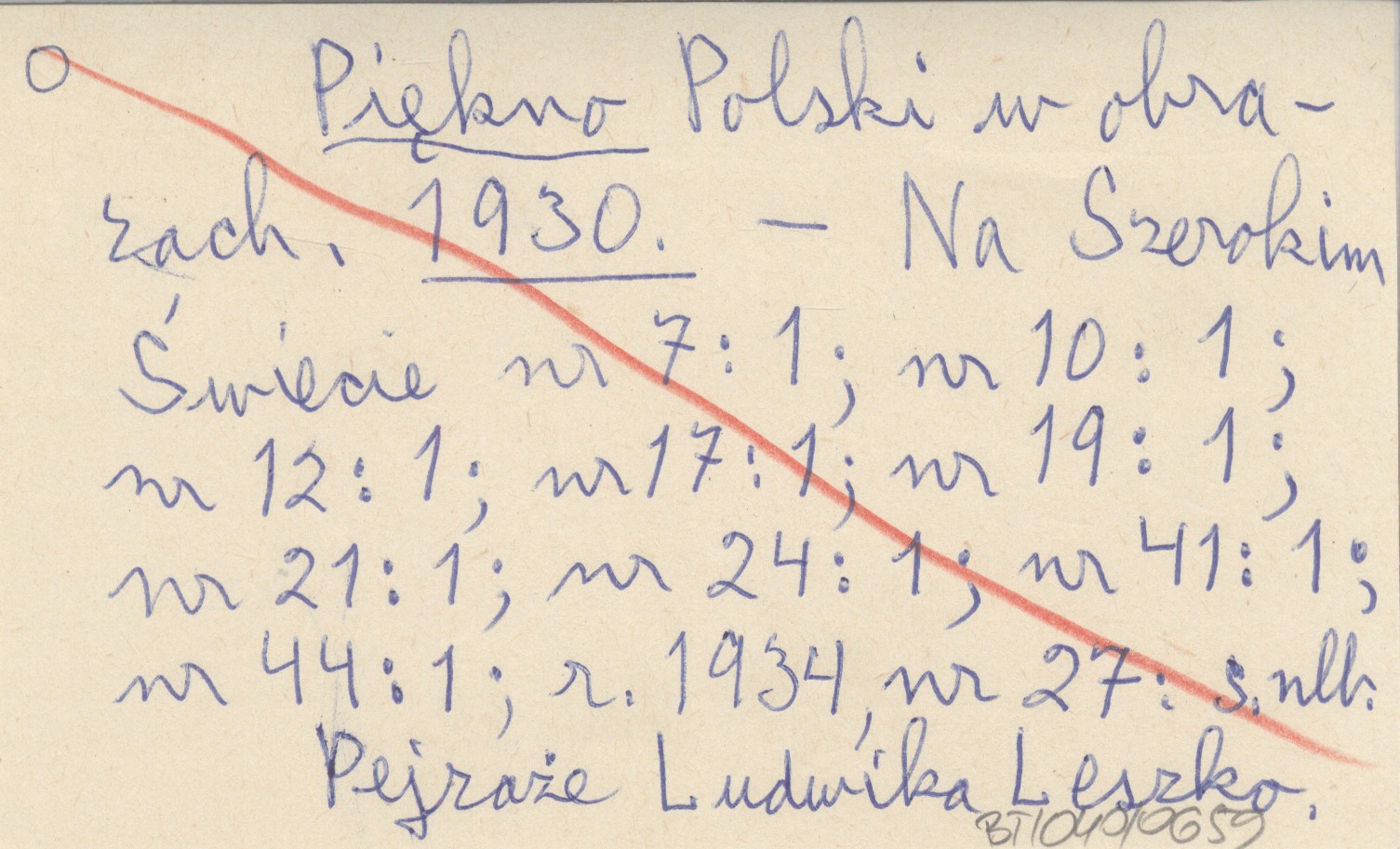 Na Szerokim Świecie, Nr 7: 1 ; nr 10: 1 ; nr 12: 1 ; nr 17: 1 ; nr 19: 1 ; nr 21: 1 ; nr 24: 1 ; nr 41: 1 ; nr 44: 1 ; r. 1934, nr 27. Pejzaże Ludwika Leszko.