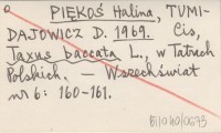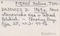 PIĘKOŚ Halina TUMIDAJOWICZ, D. ; 1969 a Nowe stanowisko cisa w Tatrach Polskich.