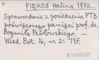 PIĘKOŚ Halina 1972... Sprawozdanie z posiedzenia PTB poświęconego pamięci prof. dr. Bogumiła Pawłowskiego.