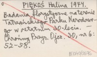 PIĘKOŚ Halina 1974 Badania florystyczne na terenie Tatrzańskiego Parku Narodowego w ostatnim 30-leciu.