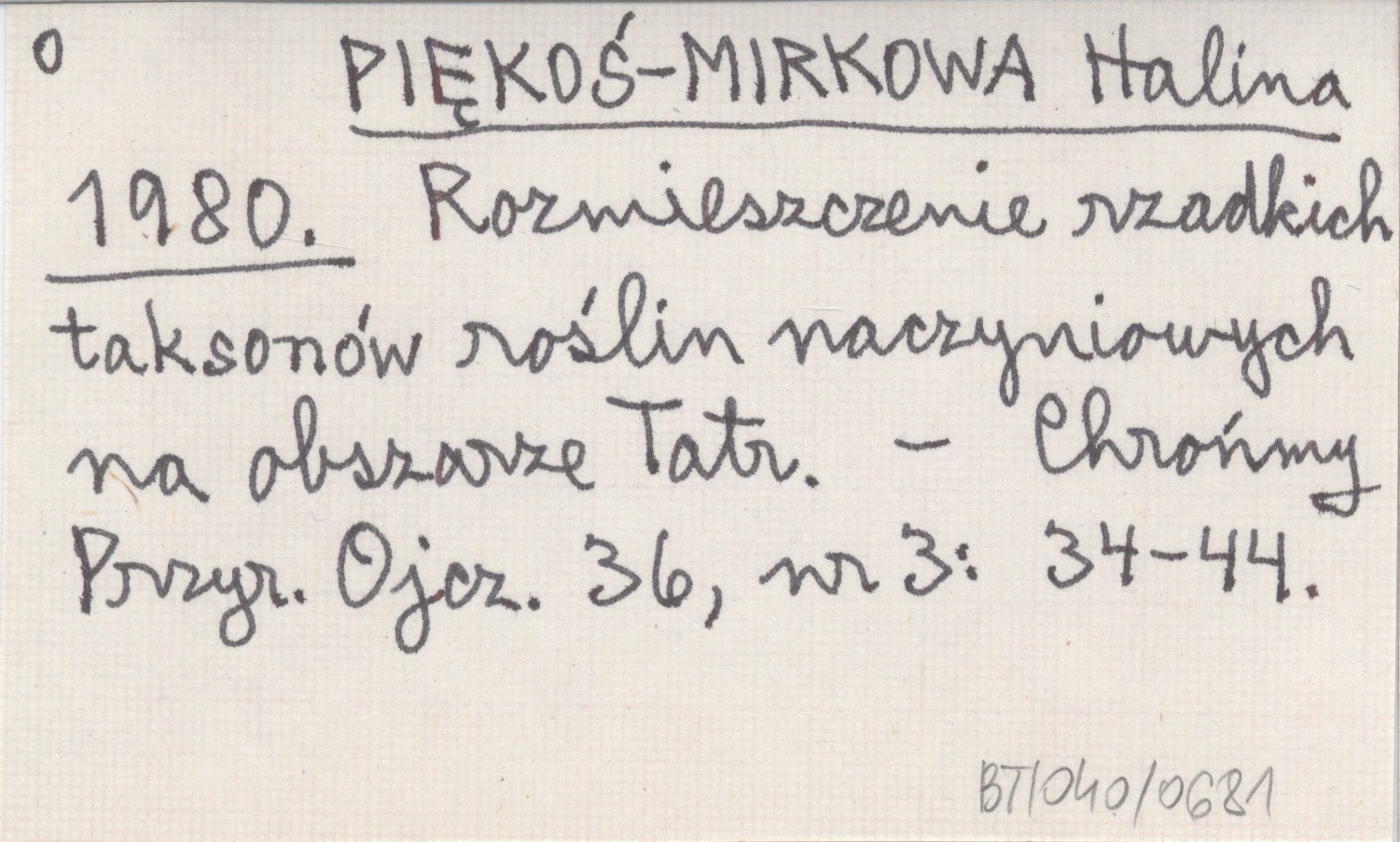 PIĘKOŚ-MIRKOWA Halina 1980 Rozmieszczenie rzadkich taksonów roślin naczyniowych na obszarze Tatr.