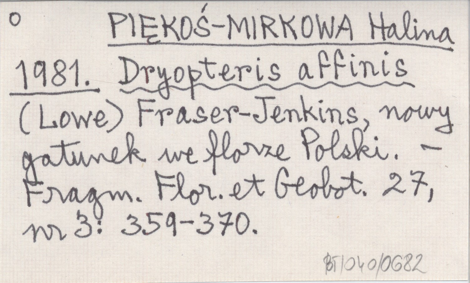 PIĘKOŚ-MIRKOWA Halina 1981 Dryopteris affinis (Lowe) Fraser-Jenkins, nowy gatunek we florze Polski.