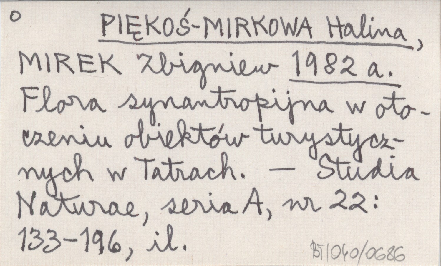 PIĘKOŚ-MIRKOWA Halina MIREK, Zbigniew. ; 1982 a Flora synantropijna w otoczeniu obiektów turystycznych w Tatrach.