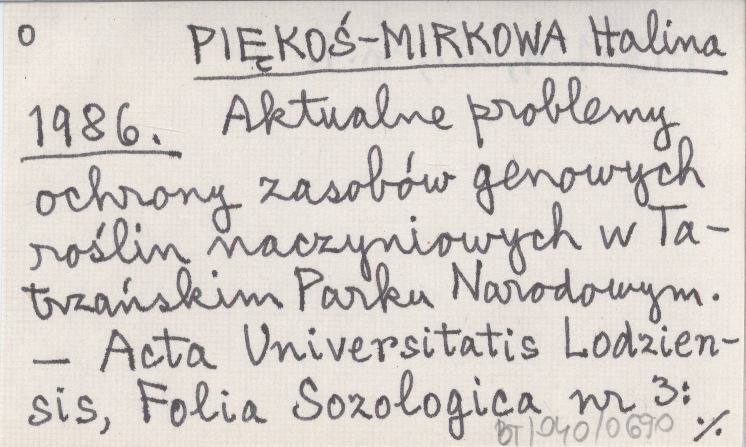 PIĘKOŚ-MIRKOWA Halina 1986 Aktualne problemy ochrony zasobów genowych roślin naczyniowych w Tatrzańskim Parku Narodowym.