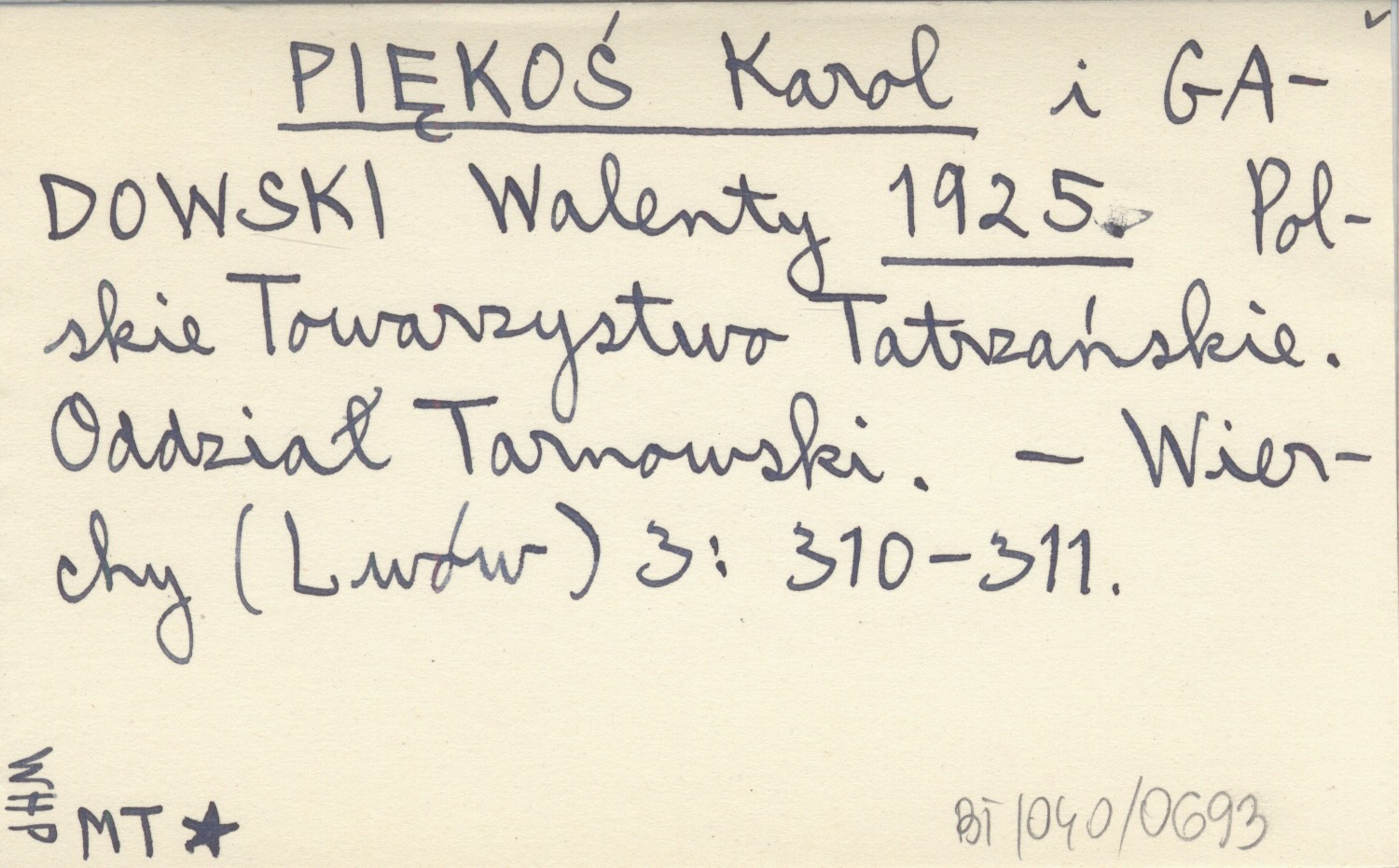 PIĘKOŚ Karol GADOWSKI, Walenty. ; 1925 Polskie Towarzystwo Tatrzańskie. Oddział Tarnowski.