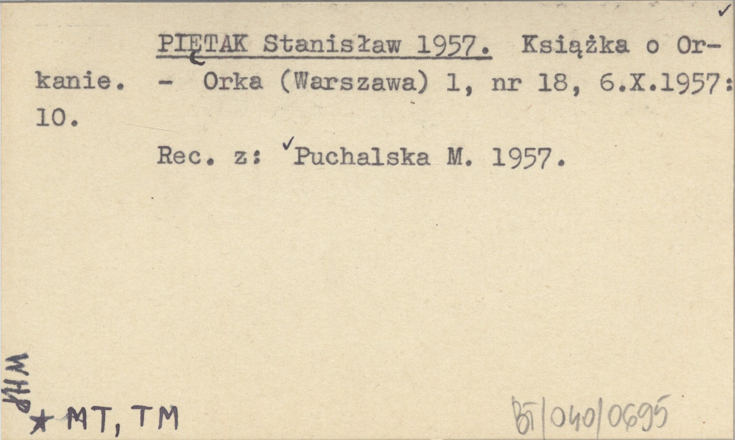 Orka (Warszawa) , 1, nr 18 (6 X 1957): 10. Recenzja z: PUCHALSKA M. 1957