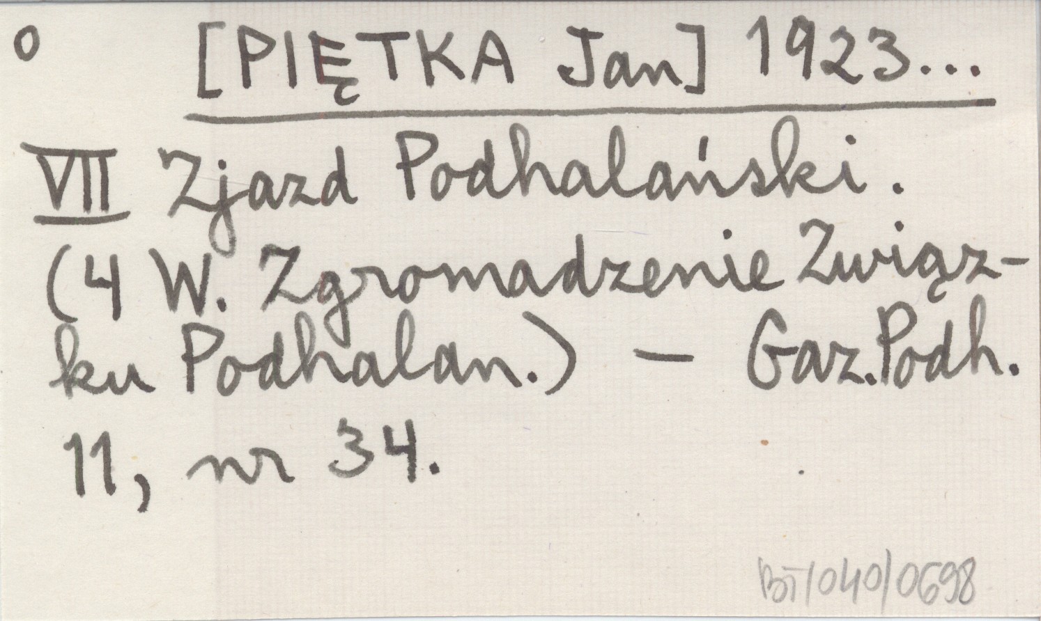 [PIĘTKA Jan] 1923... VII Zjazd Podhalański. (4 W. Zgromadzenie Związku Podhalan).