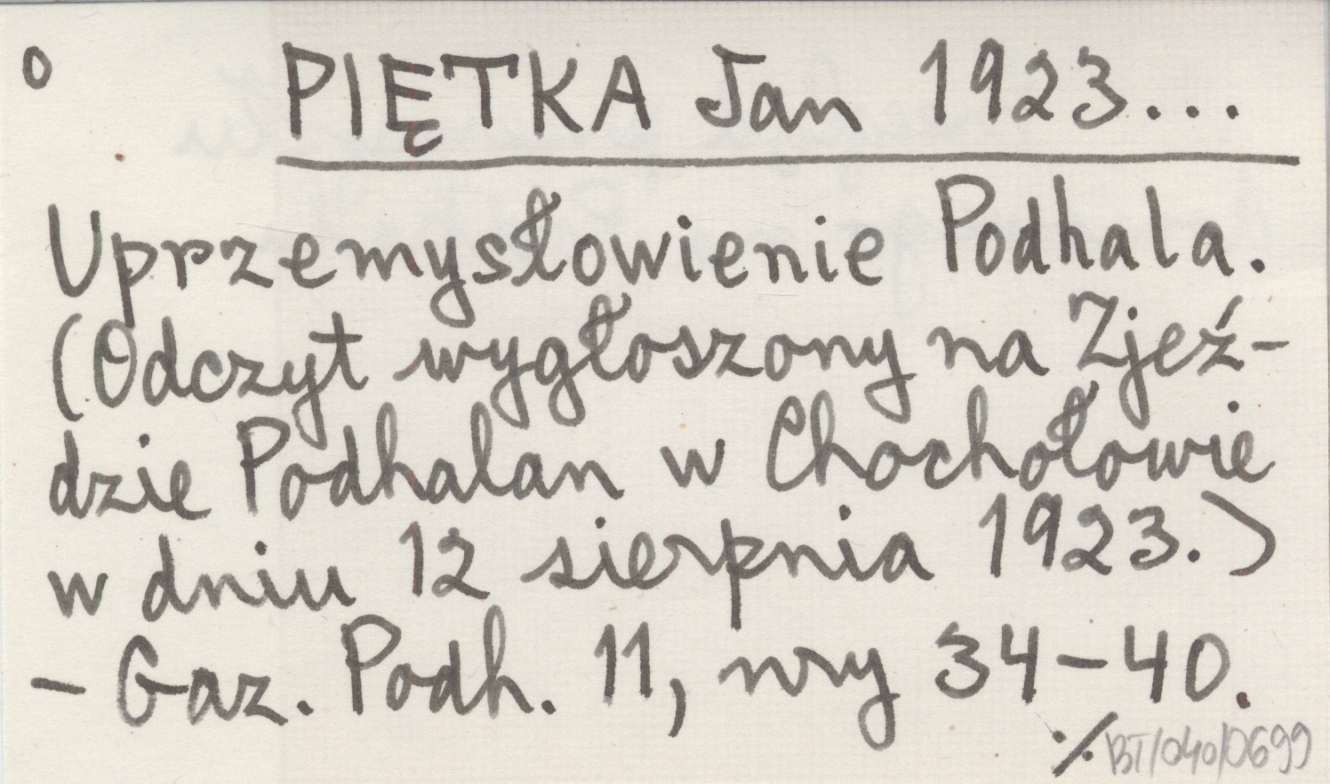 PIĘTKA Jan 1923... Uprzemysłowienie Podhala. (Odczyt wygłoszony na Zjeździe Podhalan w Chochołowie w dniu 12 sierpnia 1923).