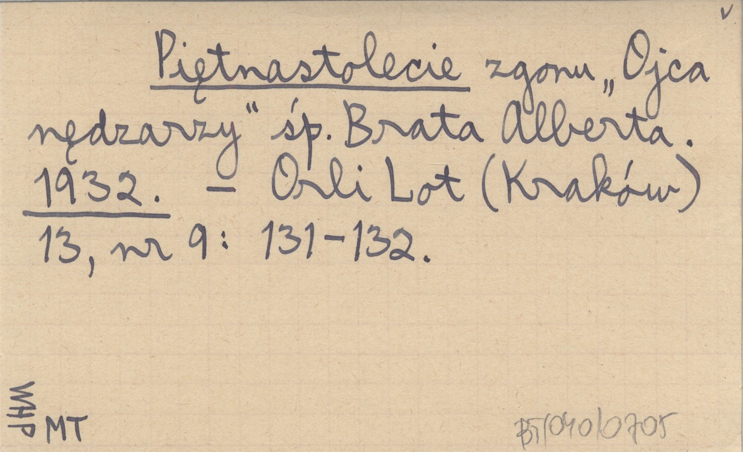 Piętnastolecie zgonu "Ojca nędzarzy" śp. Brata Alberta. 1932