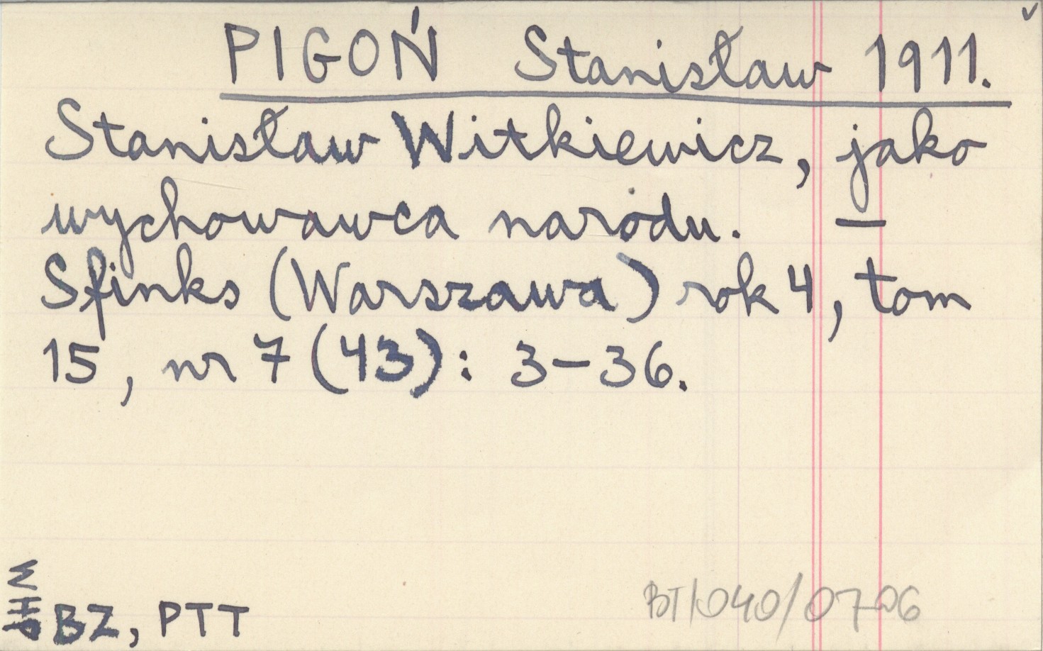 PIGOŃ Stanisław 1911 Stanisław Witkiewicz, jako wychowawca narodu.