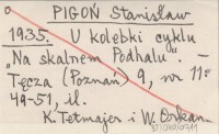 PIGOŃ Stanisław 1935 U kolebki cyklu "Na skalnem Podhalu".