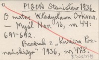 PIGOŃ Stanisław 1936 O matce Władysława Orkana.
