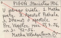 PIGOŃ Stanisław 1936 U jednego źródła. 1. Matka poety. 2. Apostoł Podhala. 3. Dramat o apostole.