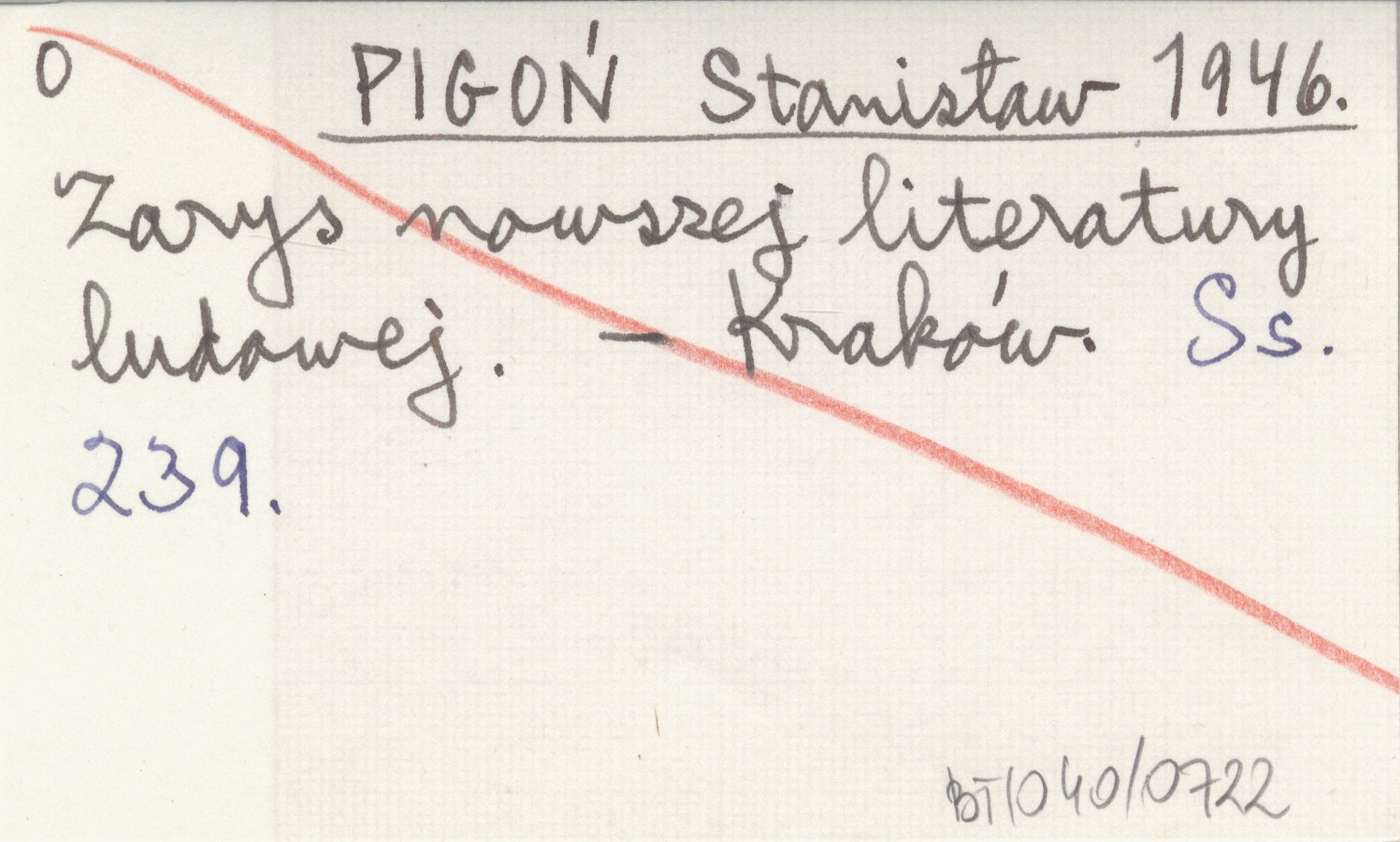 PIGOŃ Stanisław 1946 Zarys nowszej literatury ludowej.