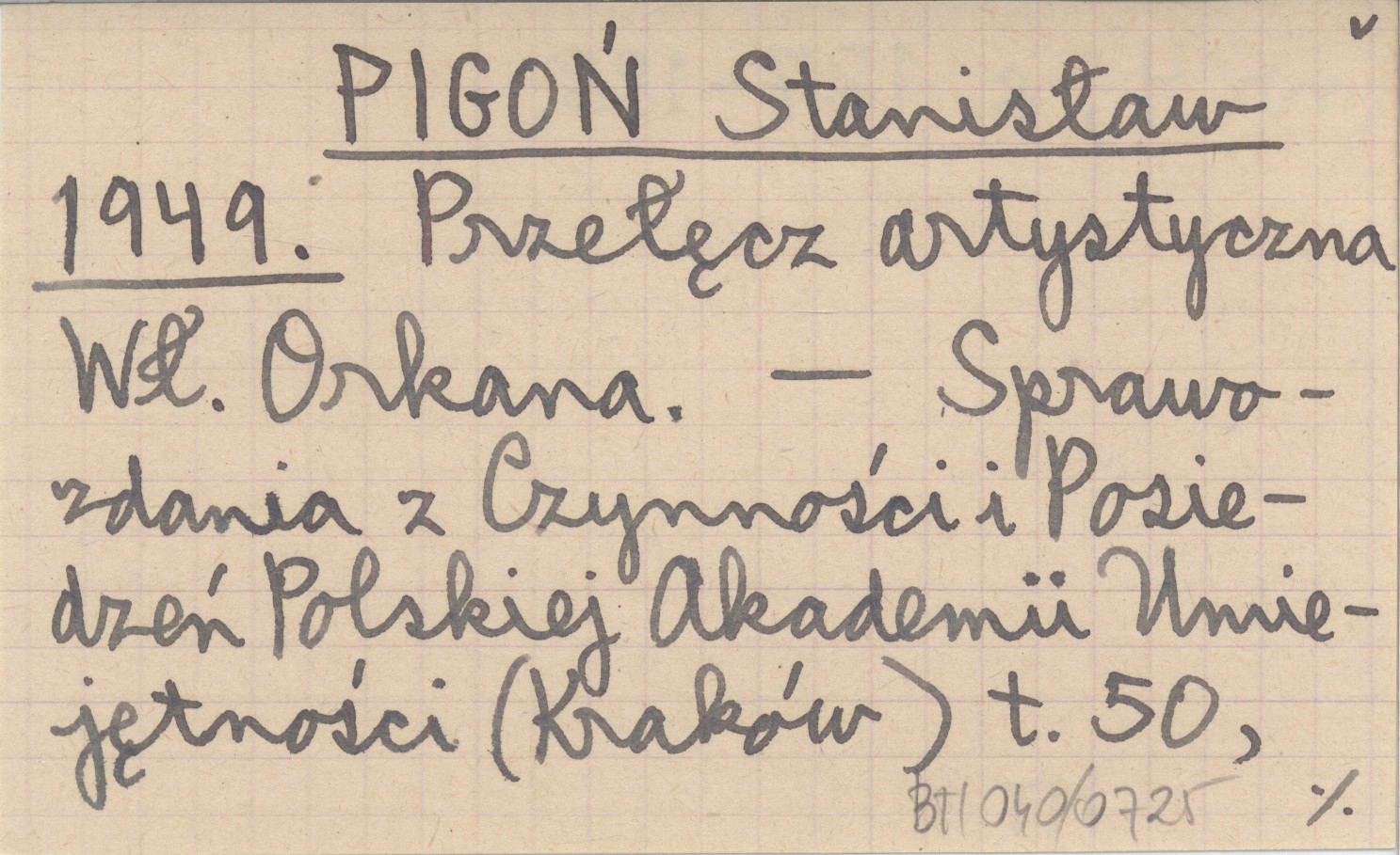 PIGOŃ Stanisław 1949 Przełęcz artystyczna Wł. Orkana.